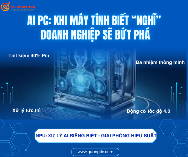 AI PC không còn là một lựa chọn công nghệ, mà là tiêu chuẩn sống còn để doanh nghiệp trụ vững trong kỷ nguyên số. Đừng để đội ngũ của bạn đơn độc trong cuộc chiến năng suất. hãy để Quảng Tin đồng hành cùng bạn, khai phóng sức mạnh trí tuệ nhân tạo với sự trợ giúp của chip NPU thế hệ mới!