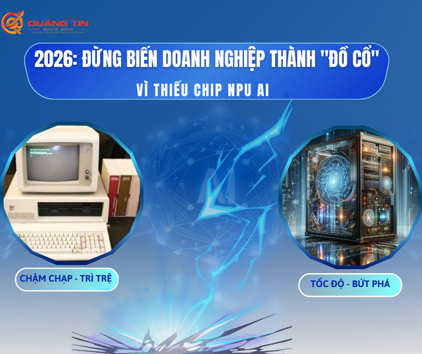 Bước sang 2026: Khi tài năng là hằng số, nhưng AI PC là hệ số nhân. Thiếu chip NPU, doanh nghiệp bạn đang chơi một cuộc chơi tốc độ trên một cỗ xe cũ kỹ. Đừng để phần cứng lỗi thời kìm hãm đà bứt phá của bạn. Đã đến lúc doanh nghiệp bạn cần nâng cấp lên tiêu chuẩn AI. Hãy cùng Quảng Tin phân tích AI PC là gì và nó có thay đổi ra sao nhé!