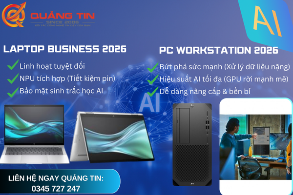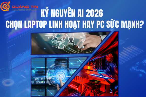 Năm 2026, phần cứng không chỉ là cấu hình, đó là cuộc đua về trí tuệ nhân tạo (AI). Quảng Tin phân tích chiến lược đầu tư Laptop & PC tối ưu nhất cho doanh nghiệp để bứt phá hiệu suất.