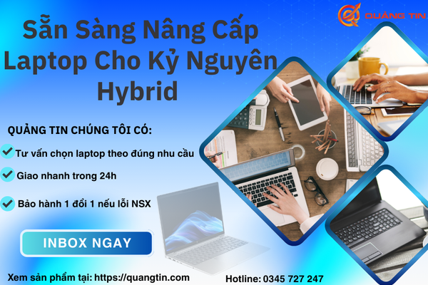 Tại Quảng Tin, bạn có thể lựa chọn nhiều dòng laptop chính hãng, bảo hành uy tín, giá tốt cùng ưu đãi theo từng thời điểm. Hybrid Work không chỉ là xu hướng – mà là tương lai của môi trường làm việc hiện đại. Và trong tương lai ấy, laptop chính là vũ khí quan trọng nhất, giúp bạn linh hoạt – hiệu quả – chủ động trong mọi hoàn cảnh.