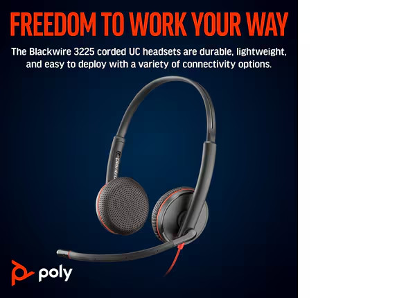 Tai nghe (Headset) Poly Blackwire 3225 Stereo USB-C +3.5mm Plug +USB-C/A Adapter